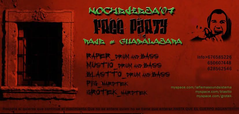 Yo por mi parte esta noche estaré en la sala Oxido pinchando con el señor Rootikaly y después estaremos en una rave que se hará por las "cercanías" de Guada.